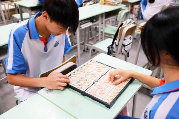 棋盘之上,是思维的无声交锋。楚河汉界分明,红黑棋子列阵,同学们端坐桌前,在“马走日、象飞田”的规则里,学习布局谋篇,锻炼逻辑思辨。落子间的斟酌,不仅是对棋局的掌控,更是专注力与策略思维的悄然成长,每一局对弈都是一次脑力的趣味修行。