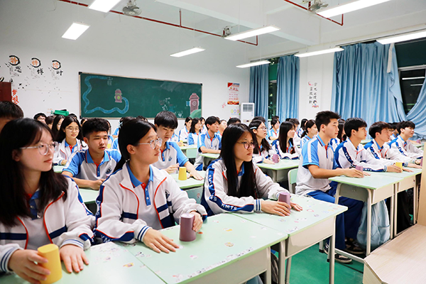 24高考2班将《杯子舞》纳入特色教学内容,以生动有趣的课堂形式,让普通纸杯成为育人载体,奏响班级成长新乐章。走进班级课堂,最先被吸引的便是那此起彼伏的 “嗒嗒” 声 —— 同学们手持透明水杯,在班主任谢伍锋老师的带领下,从基础的 “敲桌、转手” 学起,眼神专注地跟着节奏调整动作。