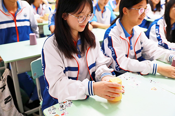 清脆的杯沿碰击声与桌面敲击声交织,形成独特的“班级打击乐”,原本安静的课堂变成了充满活力的“艺术小舞台”。